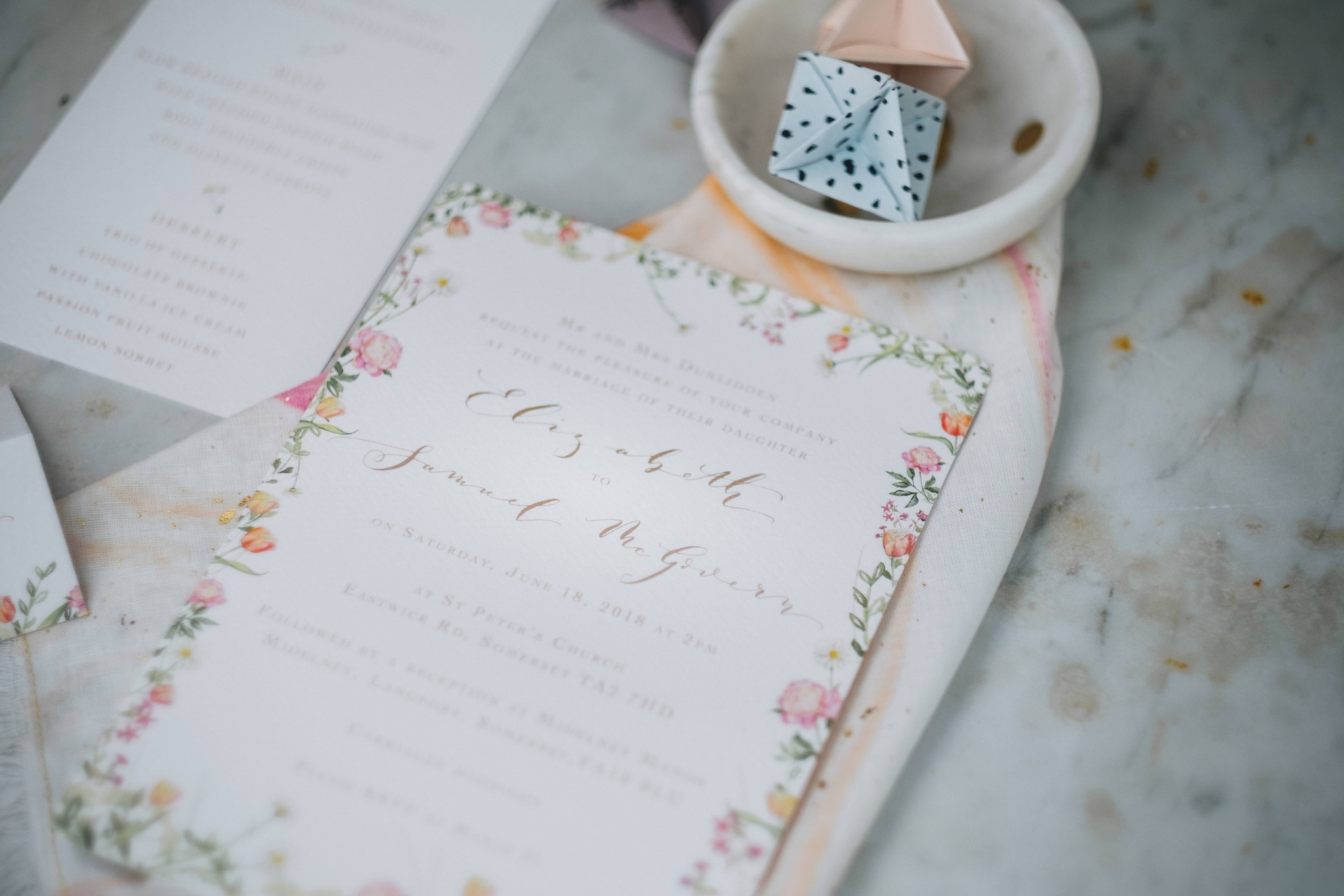 Ophelia Invitation. Image Farwood photography