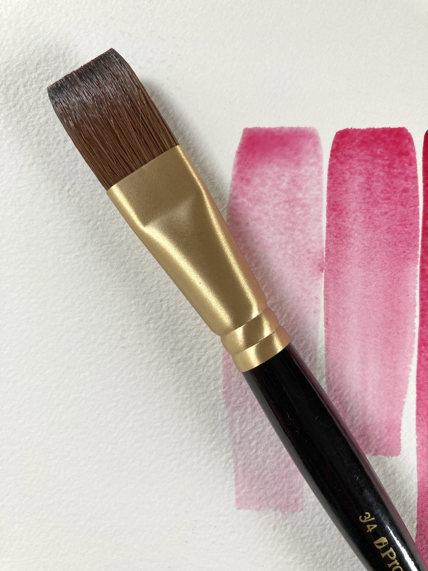 Buy the exact same brushes that I use in my Youtube tutorials: This Pro Arte Series 111 Sablene One Stroke Brush Size 3/4″ is perfect for block work and lettering.