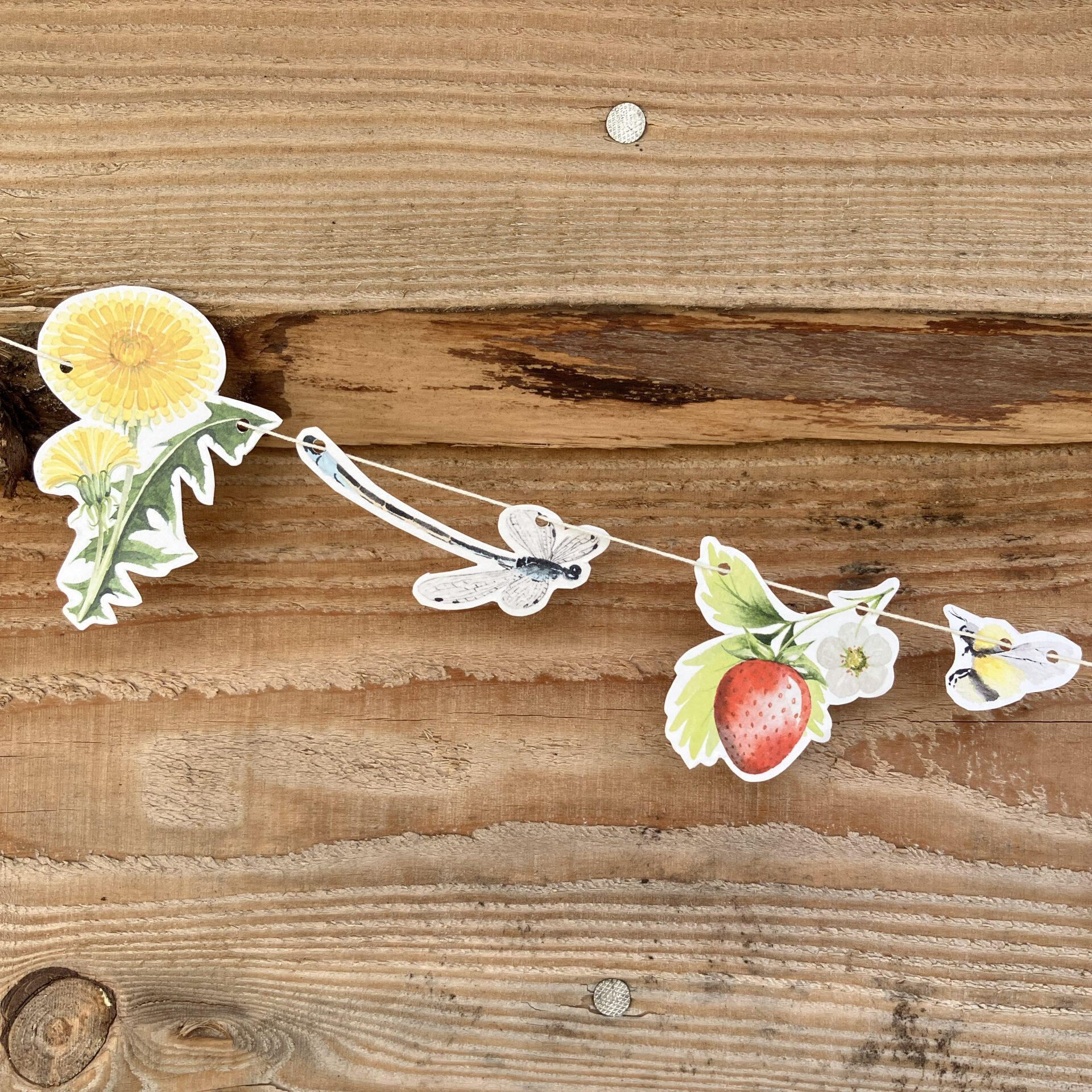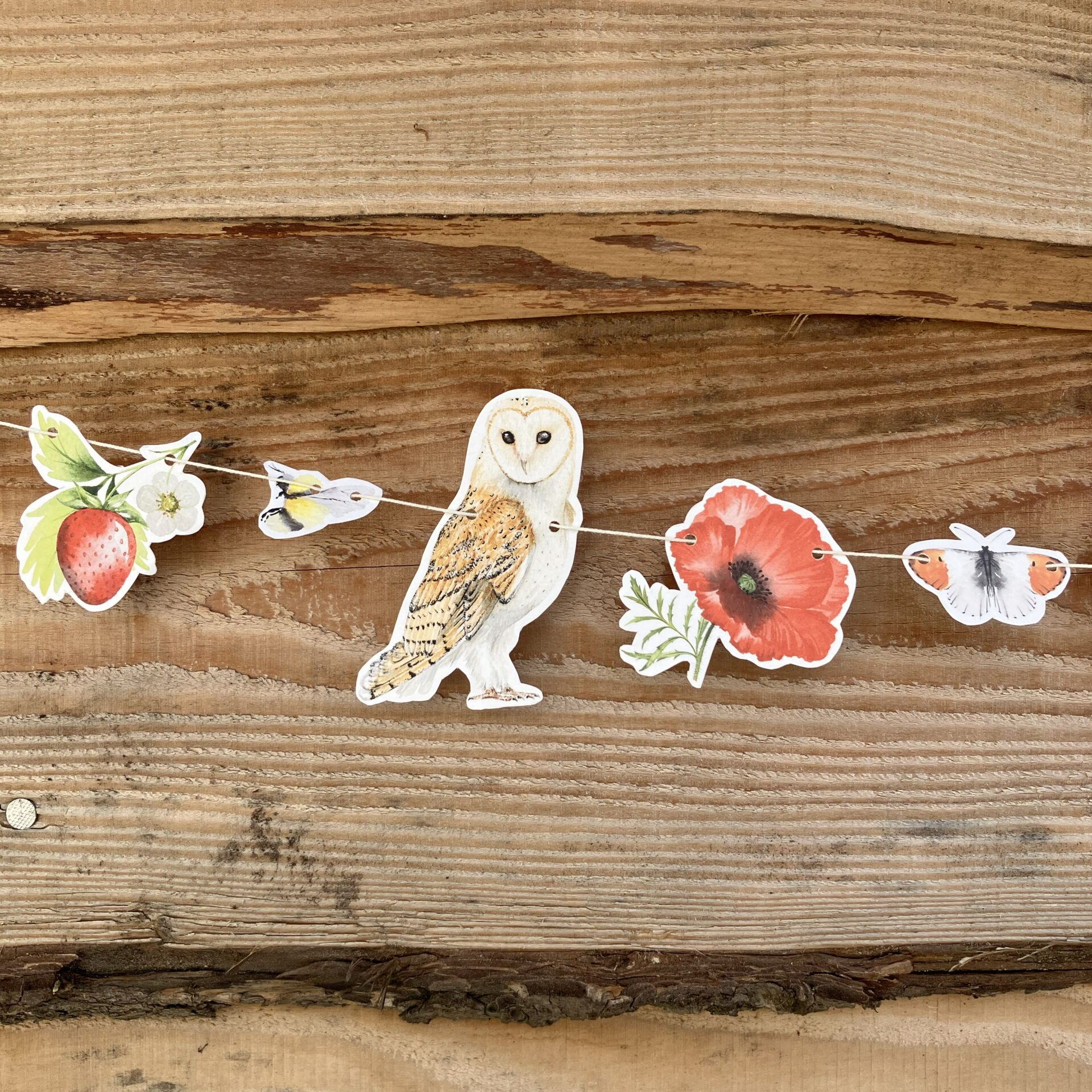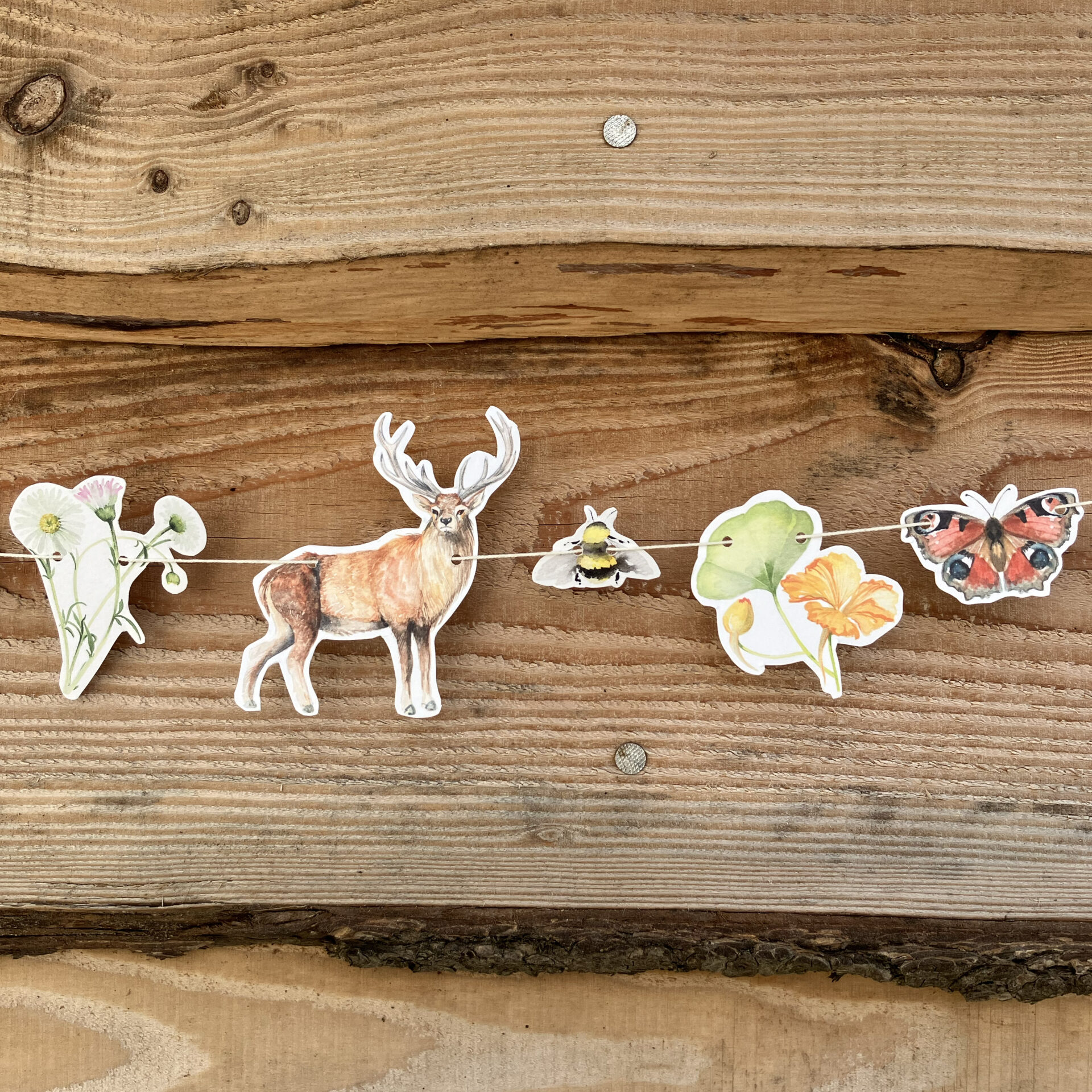 This printable personalised greetings card makes a beautiful craft gift! You can personalise the watercolour banner at the top of the card yourself! The Summer Garland card features Harriet’s hand painted watercolour illustrations that can be cut out (with adult supervision), holes punched and threaded along a string to make a delightful Summer garland.