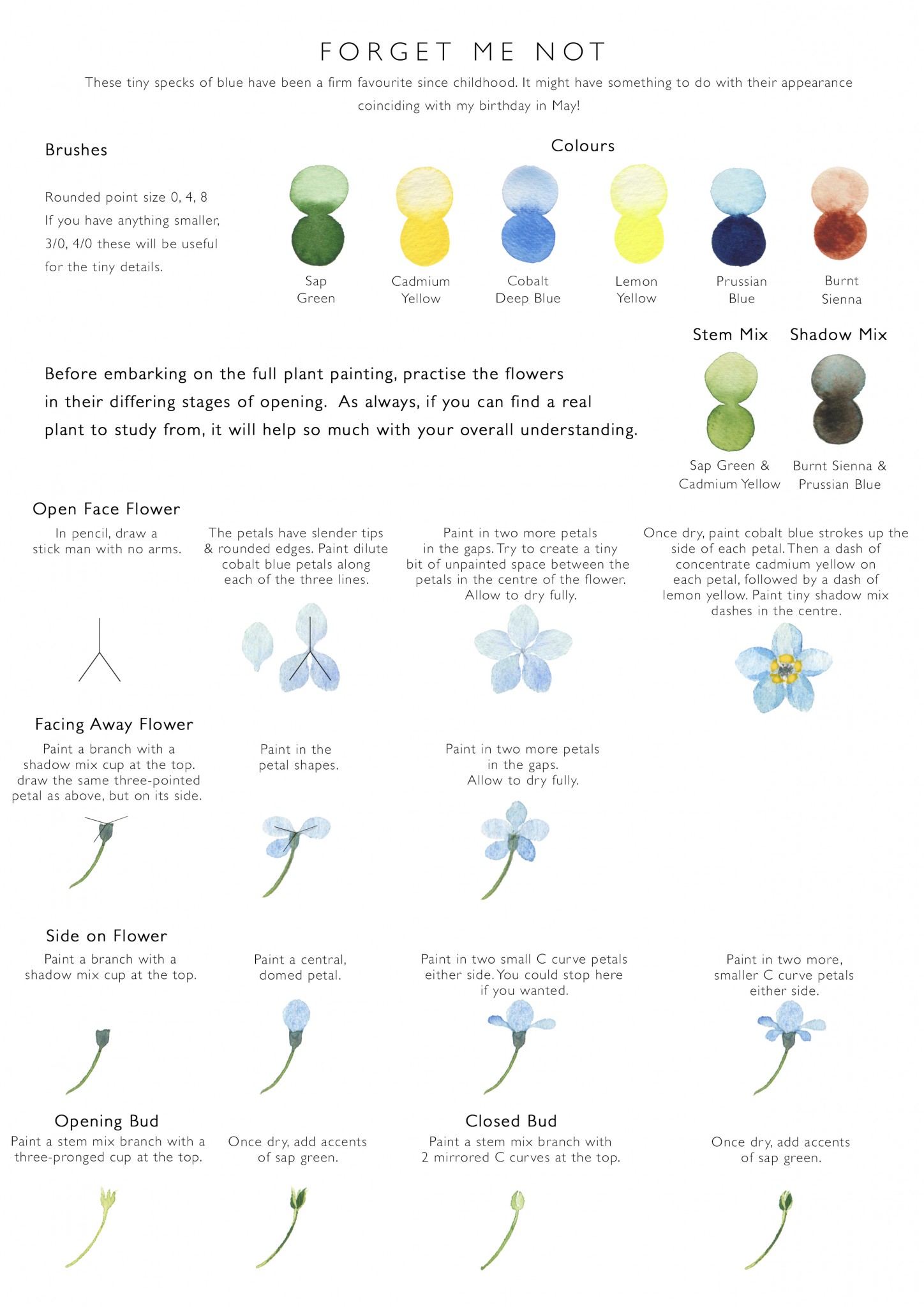 Forget Me Not Watercolour Tutorial PDF