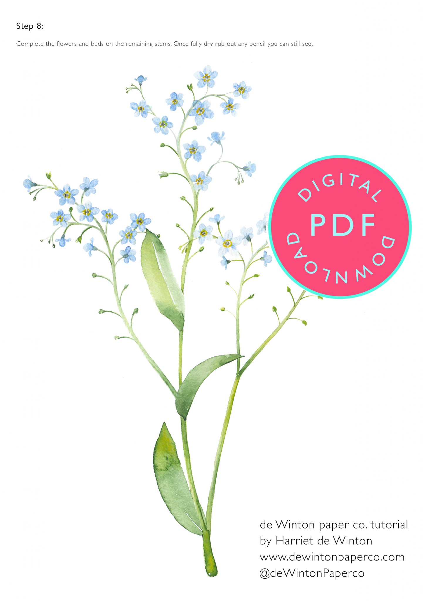 Forget Me Not Watercolour tutorial PDF