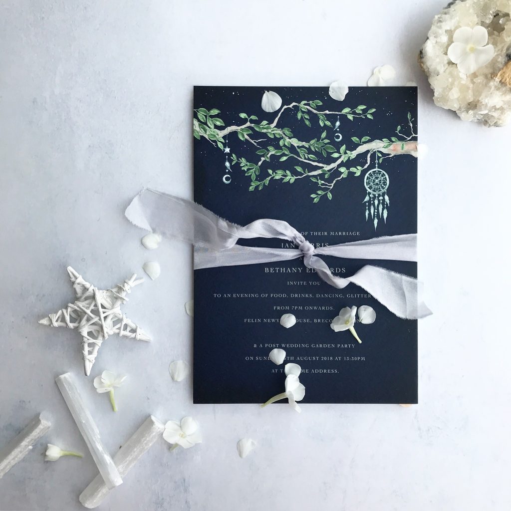 The stationery is printed and any hand finishes such as envelope addressing, wax seal stamping and ribbon tying are completed. My wedding stationery is printed in the UK and finished off in my Devon studio. They are carefully packaged up and sent by courier or recorded delivery.